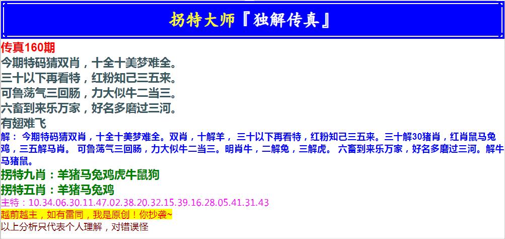 160期拐特大师澳门传真[图]