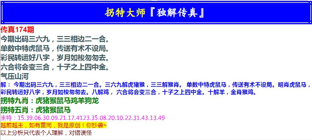 174期拐特大师澳门传真[图]
