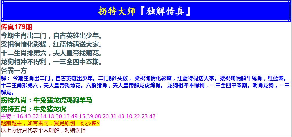 179期拐特大师澳门传真[图]