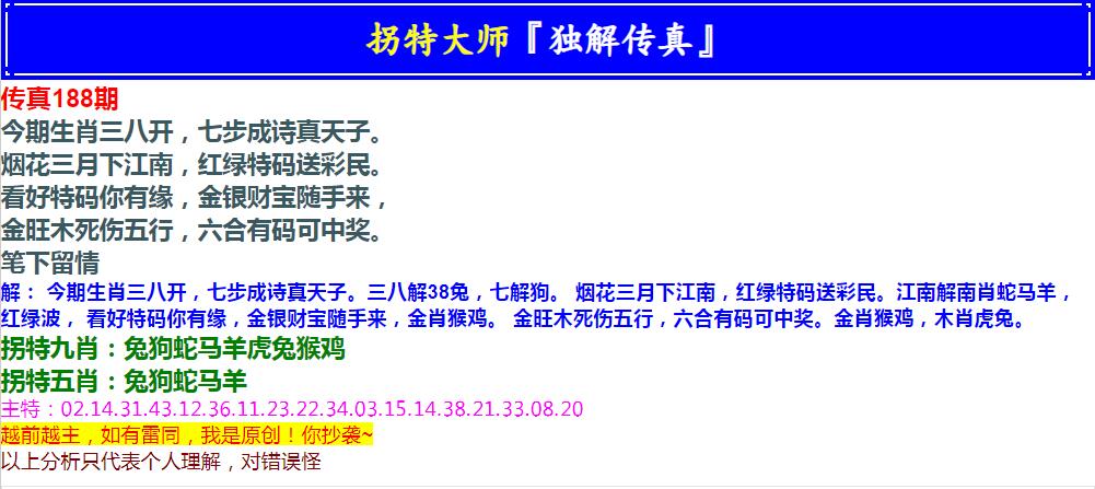 188期拐特大师澳门传真[图]