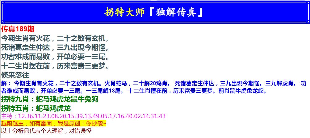 189期拐特大师澳门传真[图]