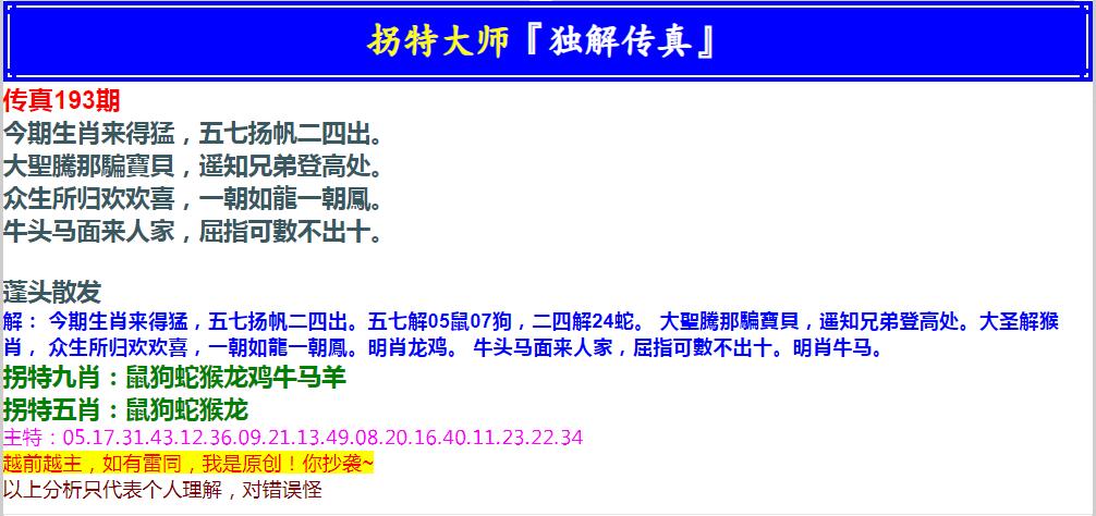 193期拐特大师澳门传真[图]