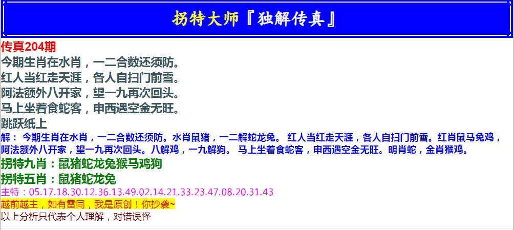 204期拐特大师澳门传真[图]