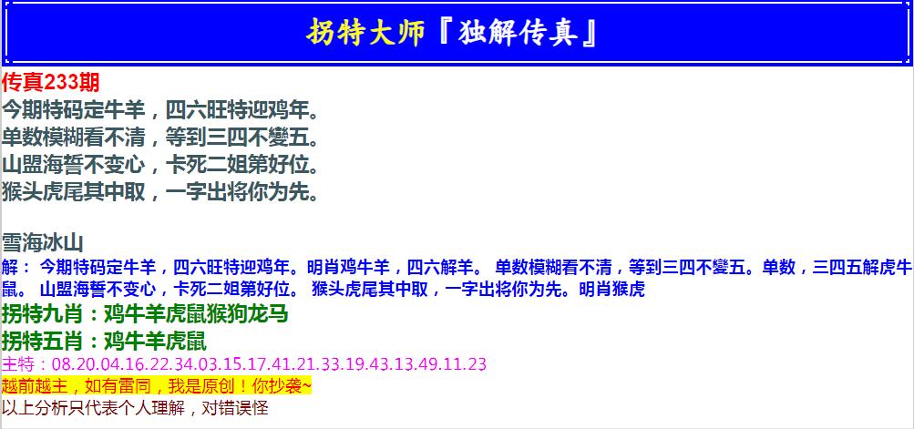 233期拐特大师澳门传真[图]