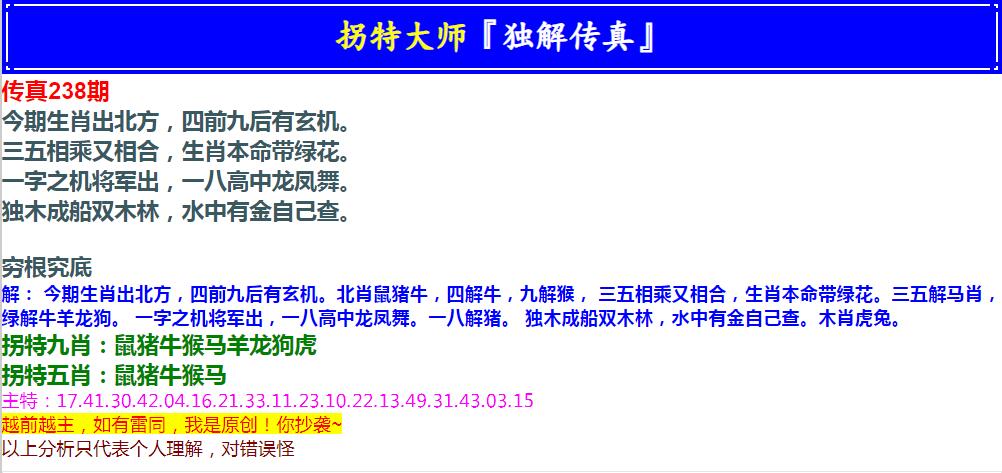 238期拐特大师澳门传真[图]