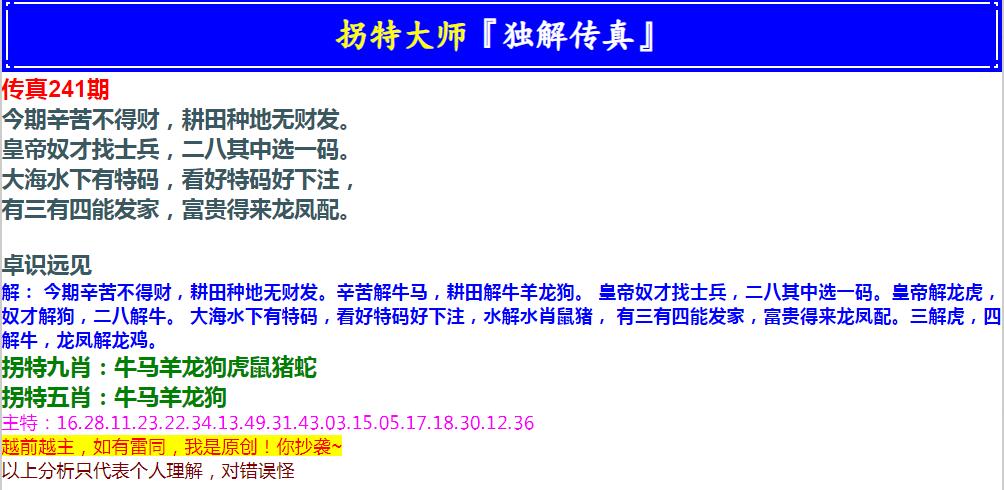 241期拐特大师澳门传真[图]