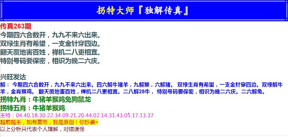 263期拐特大师澳门传真[图]