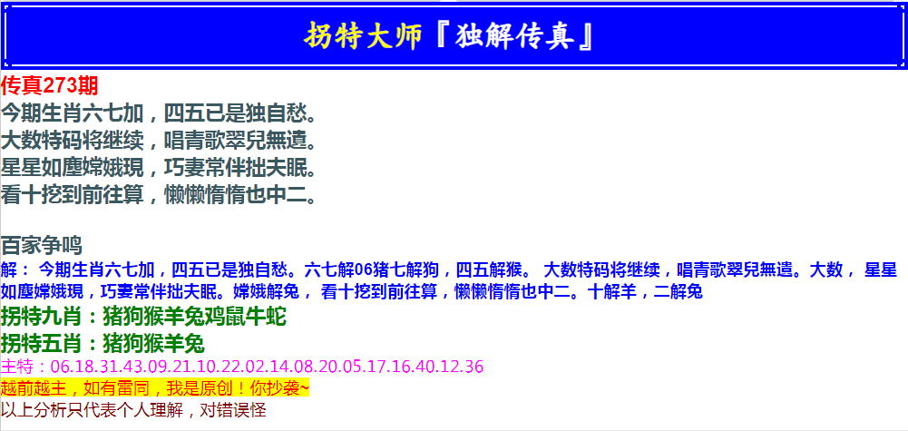 273期拐特大师澳门传真[图]