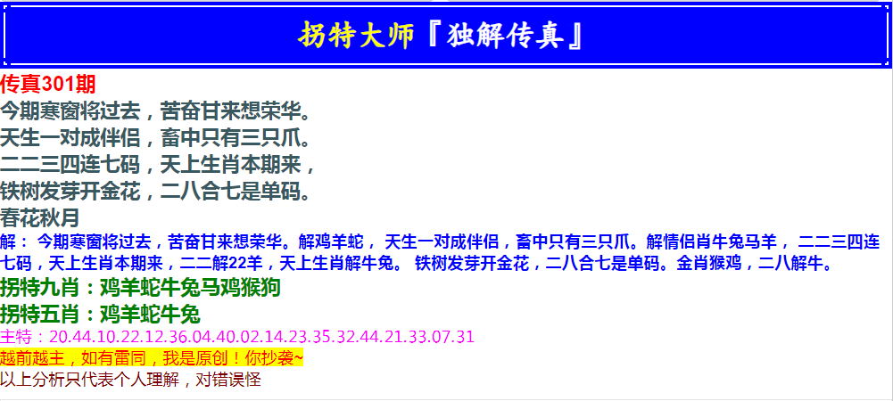 301期拐特大师澳门传真[图]