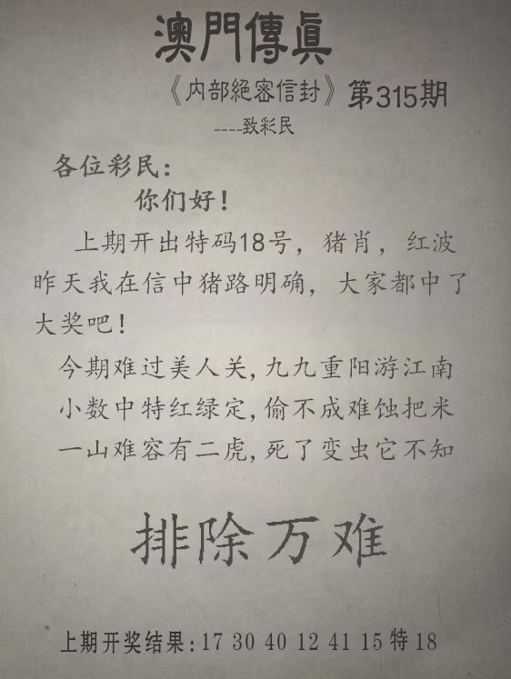 315期另版澳门传真[图]