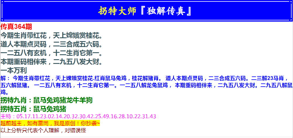 364期拐特大师澳门传真[图]
