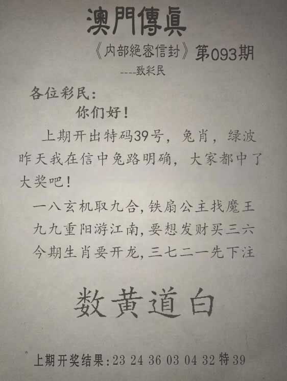 093期另版澳门传真[图]