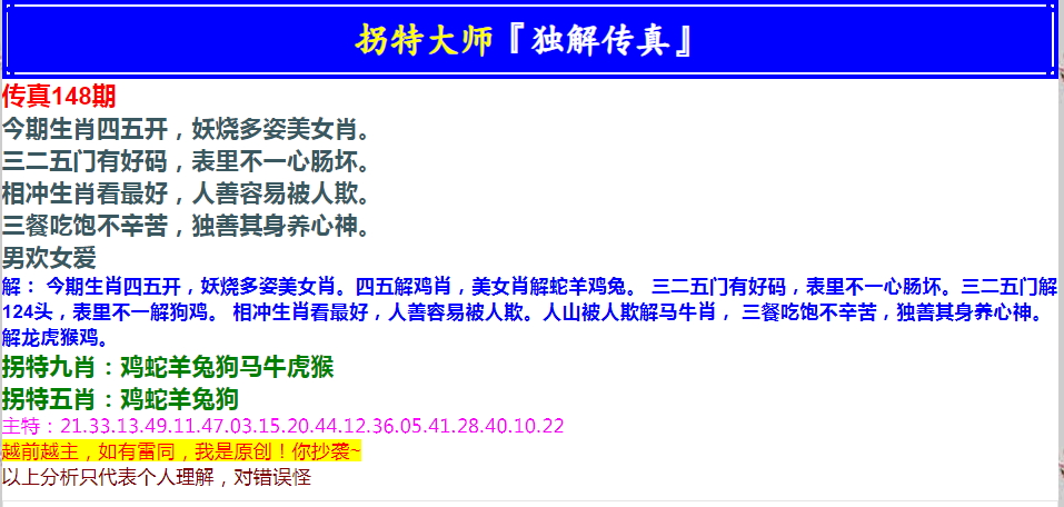 148期拐特大师澳门传真[图]