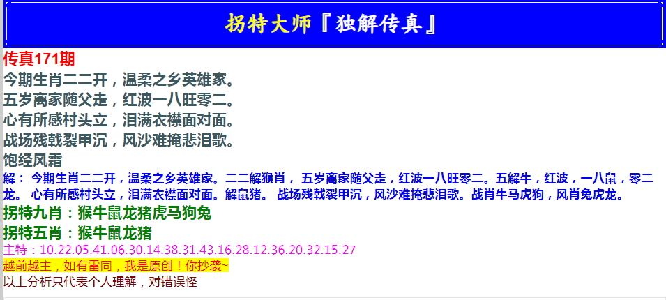 171期拐特大师澳门传真[图]