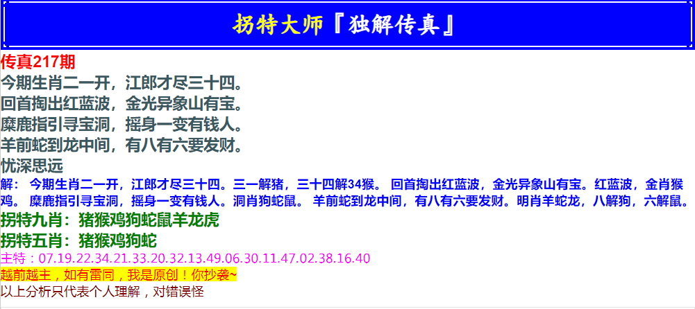 217期拐特大师澳门传真[图]