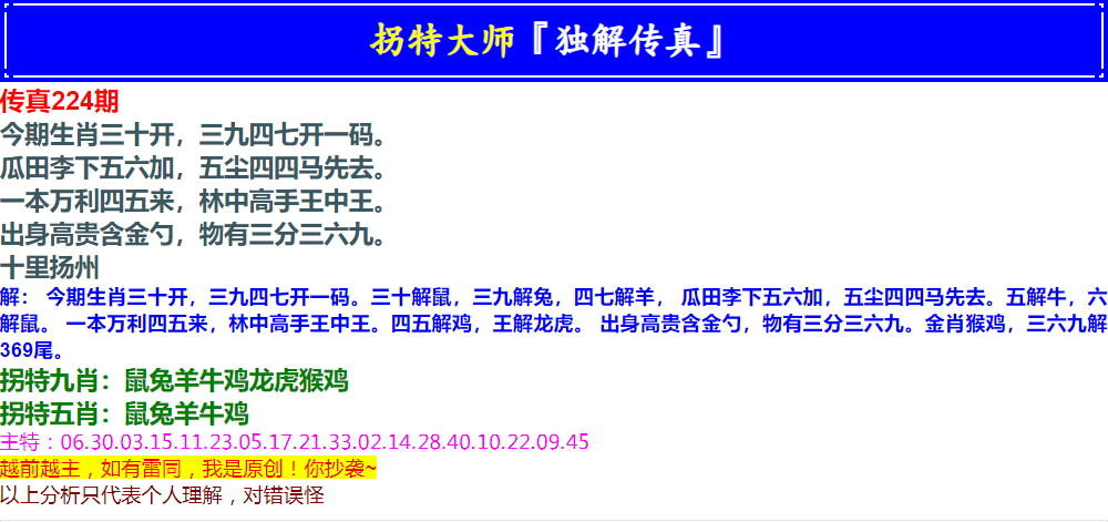 224期拐特大师澳门传真[图]