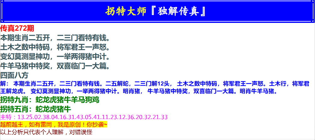 272期拐特大师澳门传真[图]