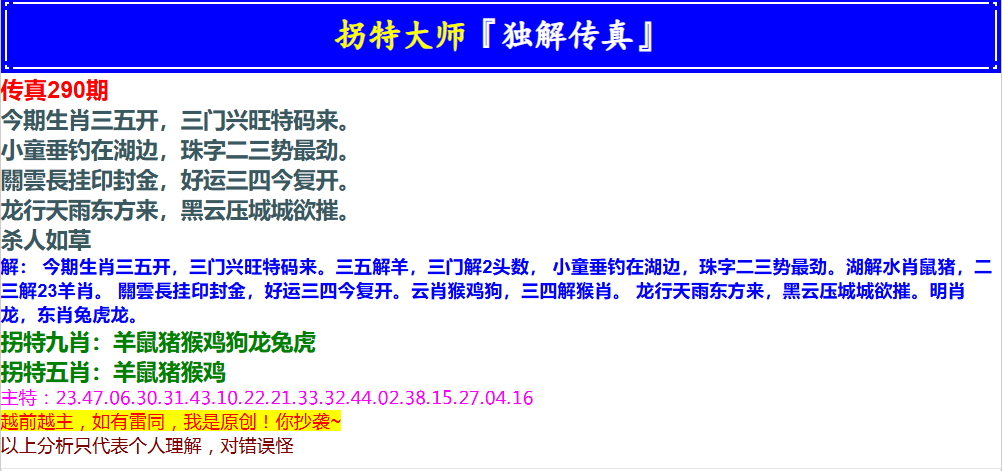 290期拐特大师澳门传真[图]