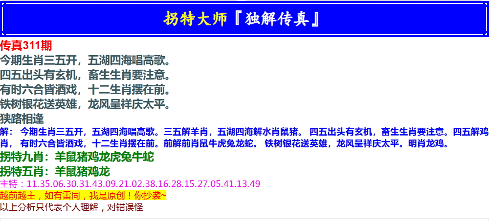 311期拐特大师澳门传真[图]