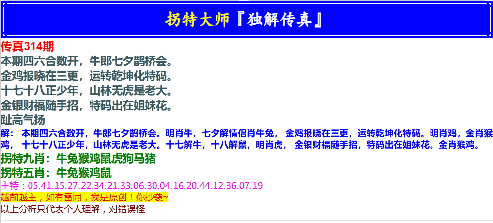 314期拐特大师澳门传真[图]