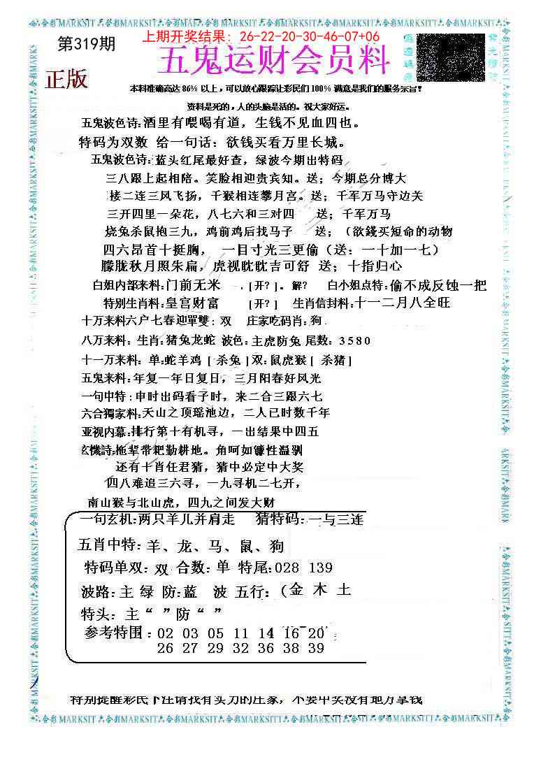 319期五鬼运财会员料[图]