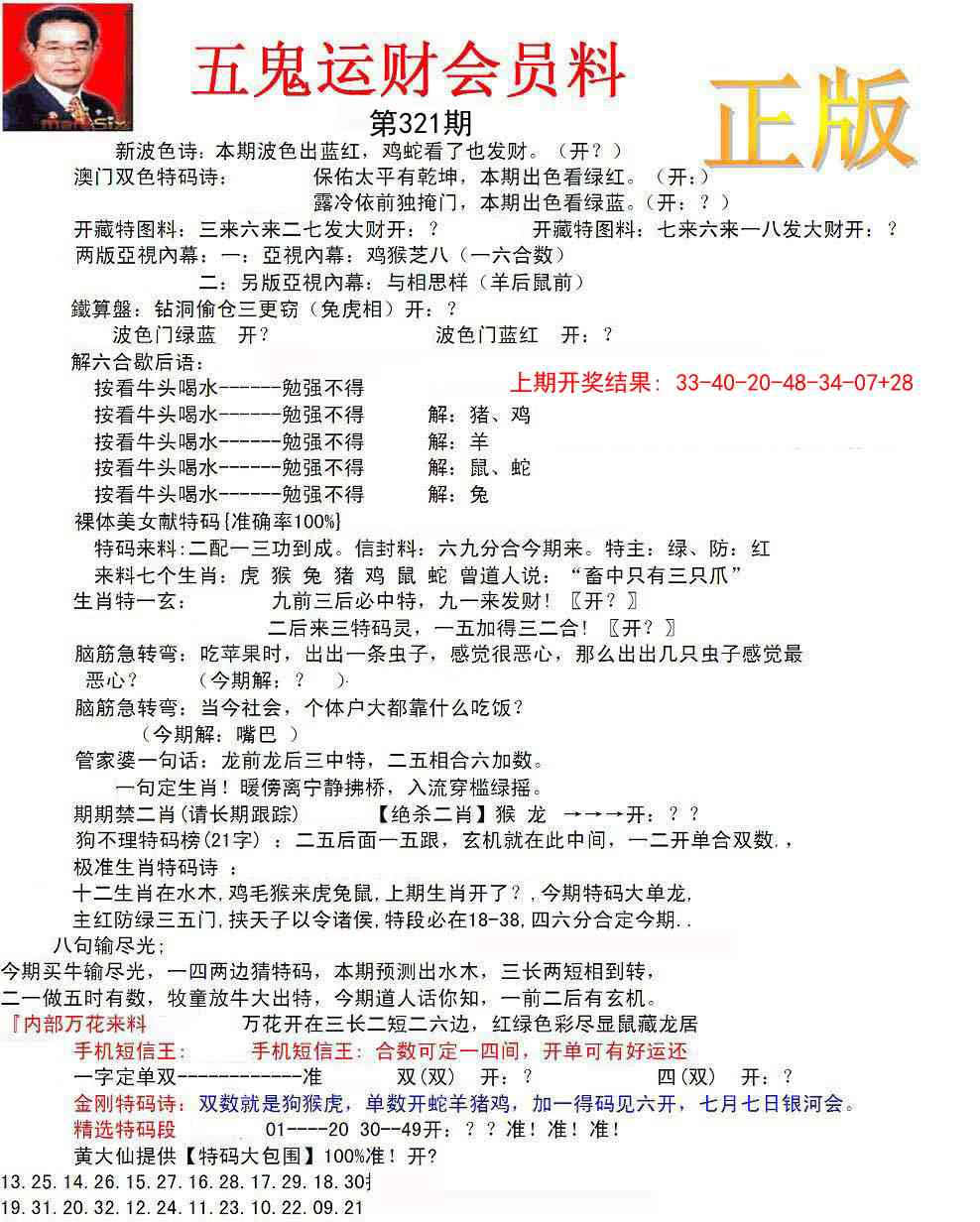 321期正版五鬼运财会员料[图]