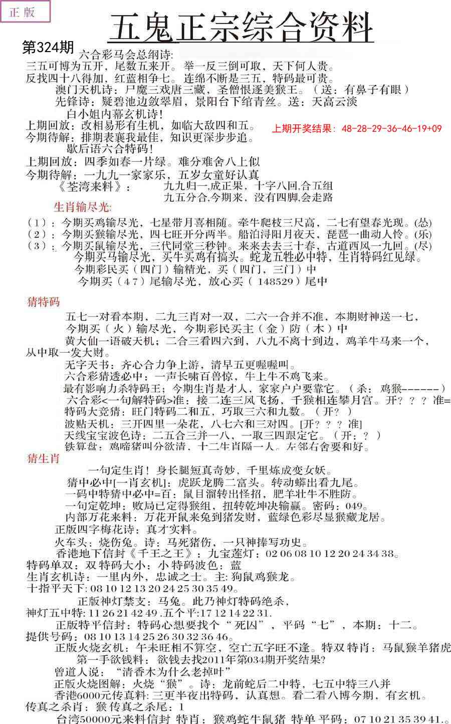 324期五鬼正宗会员综合资料A[图]