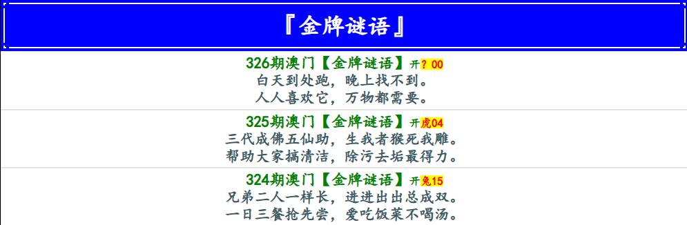 326期金牌谜语[图]