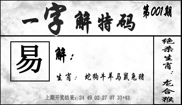 001期一字解特码[图]