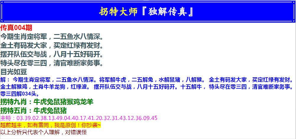 004期拐特大师澳门传真[图]