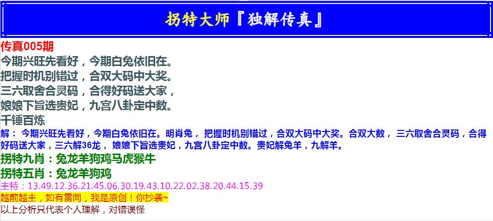 005期拐特大师澳门传真[图]