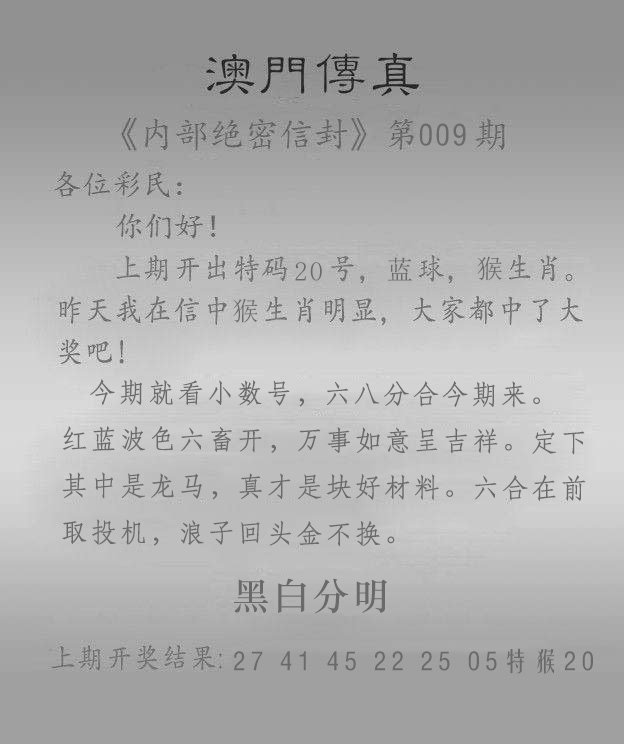 009期澳门传真另版[图]