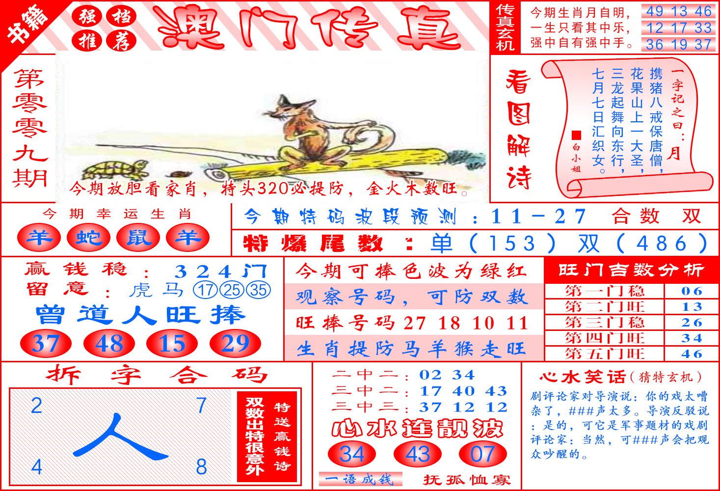 009期澳门传真玄机[图]