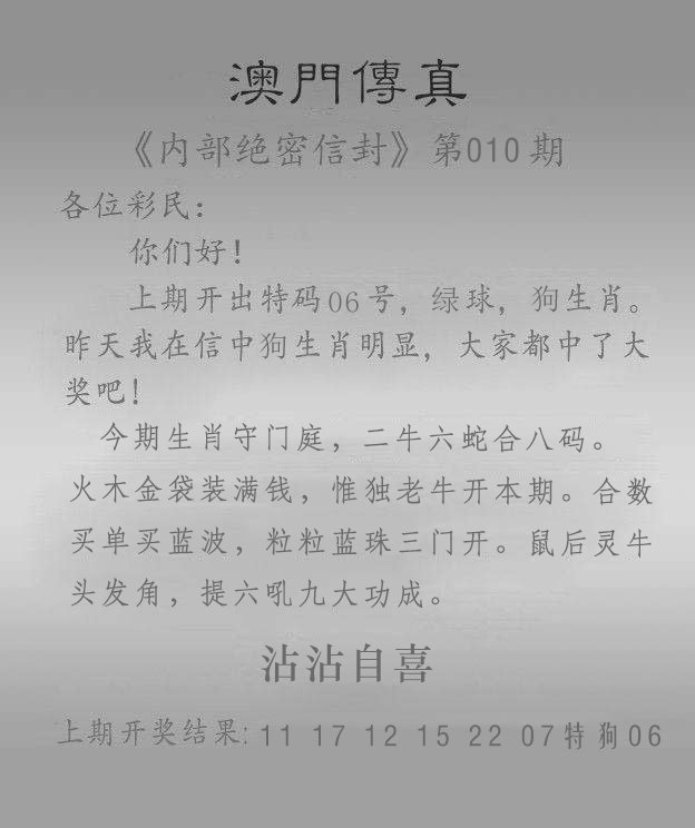 010期澳门传真另版[图]