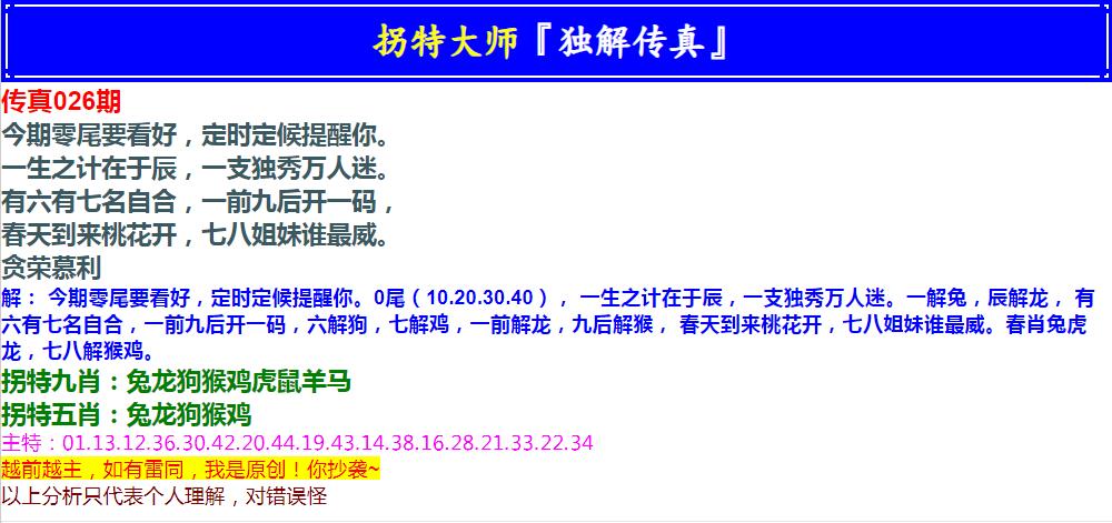 026期拐特大师澳门传真[图]