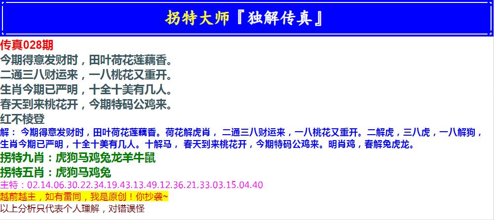 028期拐特大师澳门传真[图]