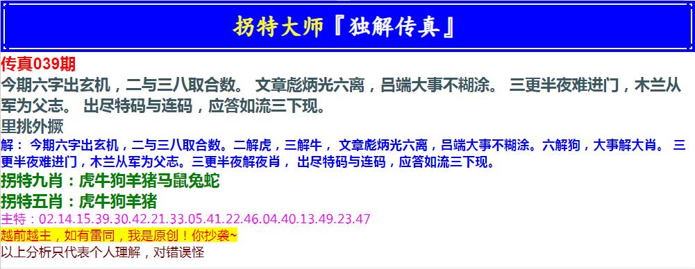 039期拐特大师澳门传真[图]