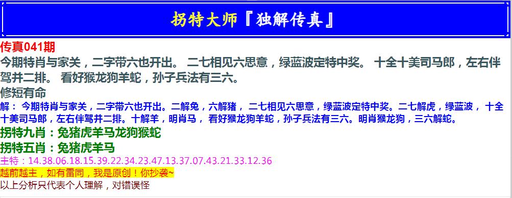 041期拐特大师澳门传真[图]