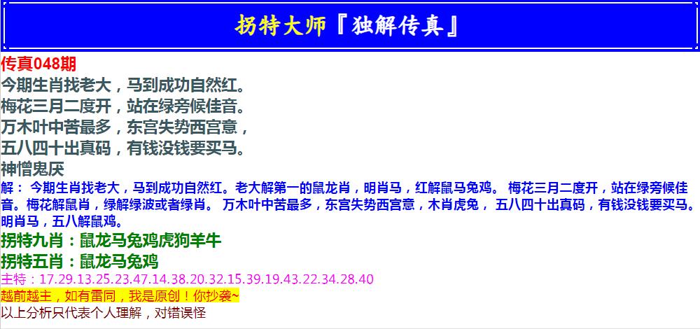 048期拐特大师澳门传真[图]