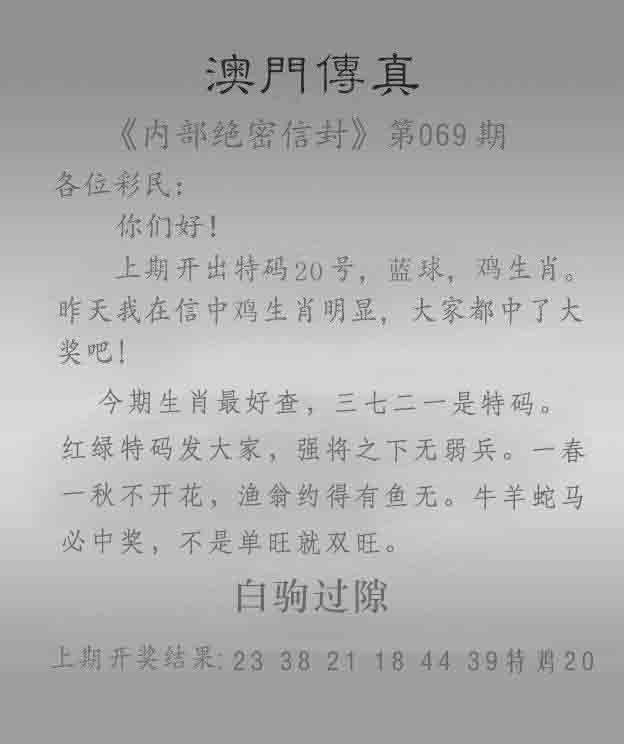 069期澳门传真另版[图]