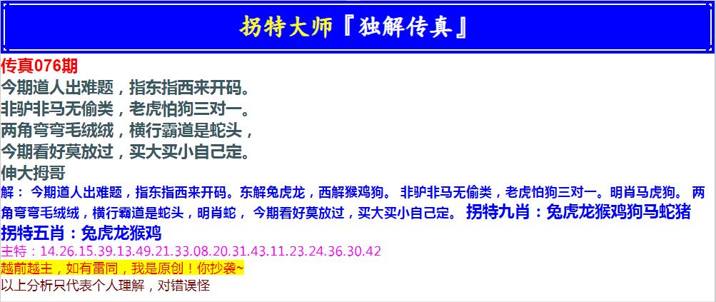 076期拐特大师澳门传真[图]