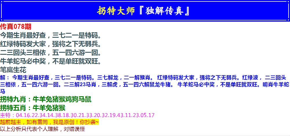 078期拐特大师澳门传真[图]