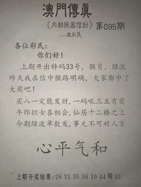 095期另版澳门传真[图]